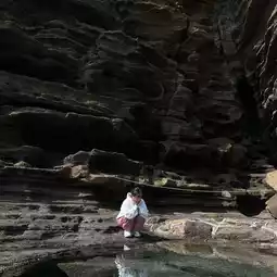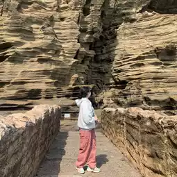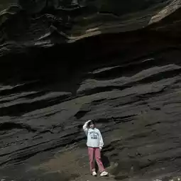 A volcanic tuff layer formed by an underwater explosion 1.8 million years ago, the basalt tuff is 600m long and 20m high, and various lithology weathering phenomena combine to create a spectacular view. On the right side of the coast, there is a semicircular, soft black sand beach.