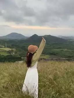 Even if you're not good at hiking (that's me!), you can climb for about 15 minutes to reach the top and enjoy the beautiful Jeju scenery ✨ It's a place where you can take the perfect photo ><