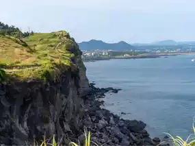 The view of the sea beyond the crater is a unique scene that is hard to find elsewhere. The red sunset reflecting on the sea, and the light wrapping around the crater and coastal cliffs, is truly special. The sunset at Songaksan makes you forget the fatigue of the day and feel both the peace and awe that nature provides. Every moment you take a photo, the desire to capture that beauty grows, making you wish time would pass more slowly there.