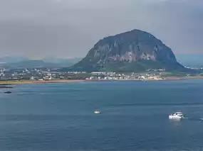The view of Sanbangsan from Songaksan offers another stunning landscape. As you trek and look back, you can see the towering Sanbangsan in the distance, its unique dome shape blending with the sea to create a picturesque scene. Especially at sunset, the sunlight that turns Sanbangsan red creates an even more dramatic view. This moment is a precious one for travelers who love photography.