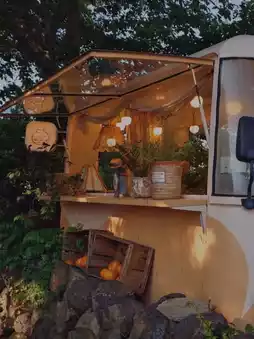 The coffee shop is a small white building with a special feel. The windows are open and it’s very photogenic when taking photos from the outside in.