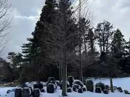 The garden in front of the hotel, which became a completely white world after the snow fell, is beautiful.
