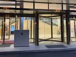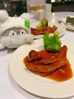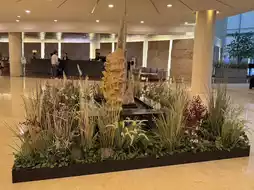 Based on the check-in desk, there is a breakfast restaurant on the left,