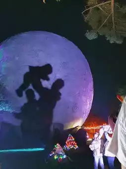 Shall we say it is a moonlight theme park in the forest? The sparkling neon signs and moonlight lights from the entrance create a magical atmosphere. In particular, taking a silhouette photo in front of the large moon sculpture is a must! It is a photo spot where lovers can get the best shot of their lives 📸