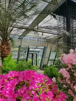 In the indoor greenhouse, you can see various flowers such as tropical plants, gorgeous hydrangeas, and deep pink orchids. The natural light coming in through the glass windows on the ceiling and the beautiful plants make it feel like you are in a secret garden! The warm lights installed here and there make the atmosphere even more romantic. ✨