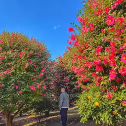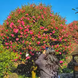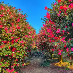 Flower buds start to open in late November, and the peak season is from December to January. You can see flowers until early February, but from late January, the petals fall and dye the ground red, creating a spectacular sight. Check the blooming status on the official Instagram (@camelia.forest) before visiting!