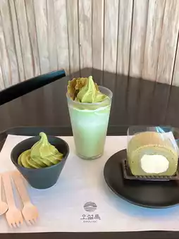 💚Recommend going to the cafe for a cup of green tea, a cup of ice cream, and a piece of cake🍵