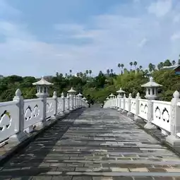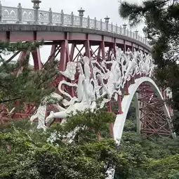Seonim Bridge, with its elegant arch design, is a must-see destination located near the stunning Cheonjeyeon Waterfall in Jeju. This modern bridge perfectly complements the island's natural beauty and offers a peaceful spot for visitors to enjoy. The bridge spans a picturesque area, making it a great place to capture beautiful photographs.