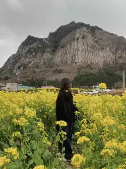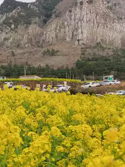 The flowers are already in full bloom, and the view of the rape blossom field with Sanbangsan Mountain in the background is so beautiful!!! If you're visiting Seogwipo, be sure to stop by. 🌼