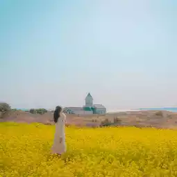 If you want to see rape blossoms and the sea in Jeju,