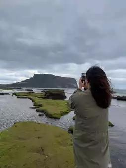 ▶️Gwangchigi Beach is a beautiful beach located near Seongsan Ilchulbong Peak in Jeju Island. It is characterized by a unique landscape where rocks and seaweed are combined, rather than a typical sandy beach. Especially during low tide, the sea water recedes and the green seaweed is revealed, creating a dreamy atmosphere. With Seongsan Ilchulbong Peak as the background, it is a perfect photo zone :) However, it can be slippery, so be careful not to fall, and if you go during sunrise or sunset on a nice day, you can enjoy an even more beautiful landscape! I highly recommend it to those who want to take emotional pictures.