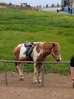 Continuing to walk south-east for ten minutes will bring you to the coastal park, where visitors can pay for a horseriding experience around a path. There's also another canola field (which you need to pay to enter), however, it's much smaller and sparser. I recommend going to the one closer to the mountain base for a more beautiful experience.