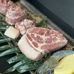 Black pork that has undergone meticulous meat selection and low-temperature maturation, with specialized grilling