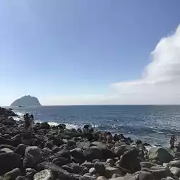 Jeongbang Falls, one of the three major waterfalls in Jeju Island, was a place that made my heart feel refreshed just by looking at it! The distance from the parking lot to the falls was not too far, so I think it was also good that I could comfortably see it and come back☺️ The sea surrounding the falls is also beautiful, so it seems to be the perfect place to take a picture of my life👍🏻
