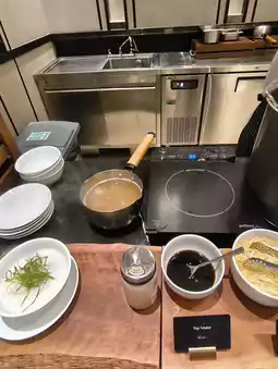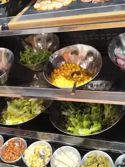 At the venue, there are chefs preparing fresh omelets on the spot, allowing you to choose your own ingredients. The soft and smooth texture will make you want to have seconds. The Korean porridge section is also thoughtfully prepared, featuring options like purple rice porridge paired with seaweed strips and side dishes, warming your heart with every bite. If you're looking for local Jeju flavors, this is the place to be.