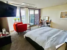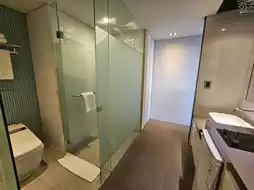The room is full of design, with wooden tones and stone walls. Every detail makes people feel pampered. The high ceilings and large windows make it a dream vacation. Every moment is worth taking photos to commemorate.