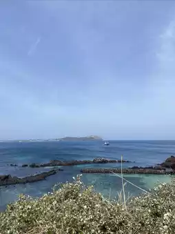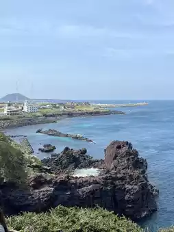Due to time constraints, we chose the eastern route of Jeju Island. The wind on Udo Island was incredibly strong, but the scenery was breathtaking. The ferry ticket cost 10,000 KRW per person. After arriving, we rented electric bikes for a round-island ride, also 10,000 KRW per person.