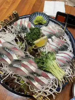 Located within a 10-minute walk from Dyne Oceano Hotel, it offers a stunning sea view. The owner is super friendly, and the mackerel sashimi is not fishy at all. The fish roe soup, packed with roe and milt, is absolutely amazing.