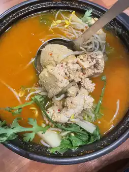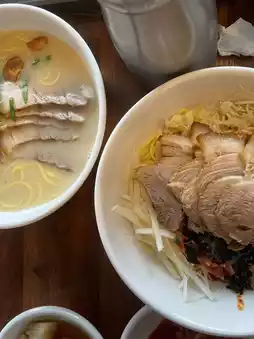 The noodles were chewy, and the pork was not fishy at all, making it incredibly delicious. Plus, the sea is right in front!