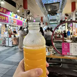 We walked around and were soon attracted by the dazzling array of food. The aroma of abalone porridge filled the entire aisle, which was the taste of the fusion of Jeju's ocean and rice; the freshly fried seafood pancakes sizzled on the iron plate, filled with octopus and chopped green onions, and every bite was so crispy; the most surprising thing was the "Orange Juice Stand", which concentrated the fruity aroma of Jeju's sunshine. A cup of ₩3,000, sour, sweet and cold, it is definitely a must-try!