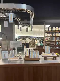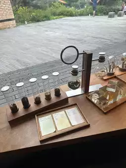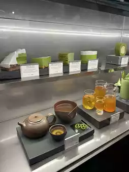 Enjoy a leisurely moment in a cafe space filled with natural light, with a backdrop of open green tea fields, fragrant tea lattes, green tea desserts, and a wide open space. 😀