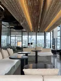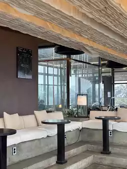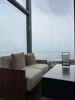 Short for "Out of Ordinary," this name signifies a special space that breaks away from the ordinary. This cafe boasts a unique and modern exterior, which earned it a special award at the 2020 Jeju Architecture and Culture Awards. The entire second floor is made of glass walls, offering a panoramic ocean view. Inside, bamboo decorations connecting the first and second floors add a stylish touch, making it a great spot for photos.