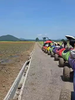 Boromwat offers a picturesque view of hydrangea and buckwheat flower fields, resembling a window screen. You can drive there, so no need for strenuous walking, and this scenery can only be enjoyed in summer—definitely worth a visit! The rainbow train is included in the admission fee, and they also provide umbrella rentals and cushions, making it comfortable to ride around and enjoy the surroundings.
