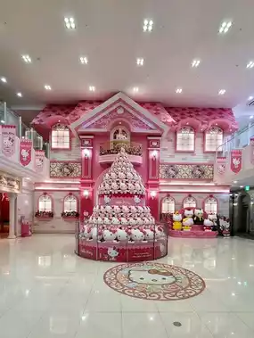 The rooftop garden features a maze and a view of the island. There's also a Hello Kitty-themed cafe indoors.