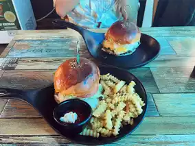 The day's itinerary was: climb Seongsan Ilchulbong Peak → refuel with a burger → continue to Udo Island. This restaurant is a great place to refuel after a hard day's work, so you can continue your next trip right away.
