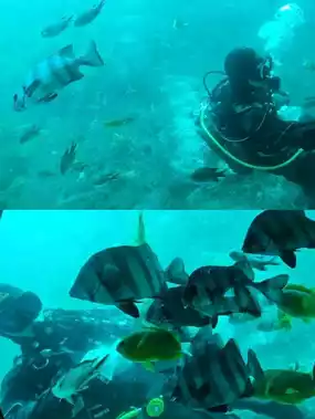 The ticket price may seem a bit high, but it's a great way for families to create lasting memories on a trip to Jeju Island. We did see fish, as you'd expect, but perhaps 40 meters isn't too deep, so there weren't too many. While that's typical of movies and TV shows, I still saw schools of fish frequently. The divers were hard at work underwater, and the seaweed was beautiful, like a garden.