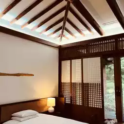 Podo Hotel is located in an area with no noisy convenience stores or shops nearby, allowing guests to fully focus on rest and relaxation. When you open your room's window, you are greeted only by a vast lawn, Jeju's stone walls, and a lush green forest. In the morning, you can take a walk to the sound of birds, and at night, you can feel true peace in the quiet. It is an optimal place for those who want to escape the noise of the city and their complicated daily lives to spend a quiet, private time. It is also a great experience to visit other buildings by Itami Jun, such as the Pinx Golf Club and the Church of the Sea of Wind, which are located nearby.