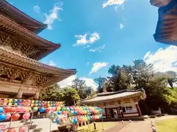 The architectural splendor of Yakcheonsa Temple is breathtaking. Modeled after the Buddhist temples of the Joseon Dynasty, the complex features vivid, traditional colors and detailed roof lines. The surrounding garden is equally serene, with well-maintained paths and lush greenery. We particularly enjoyed the view of the temple complex set against the blue Jeju sky. It's a beautiful location that combines natural tranquility with exceptional human craftsmanship, making for a very memorable visit.