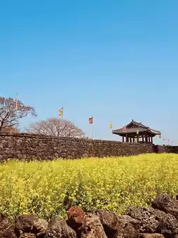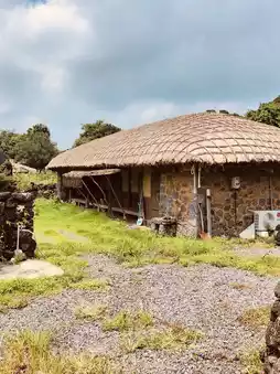 Beyond its rich culinary heritage, a visit to Seongeup folk village is incomplete without admiring its traditional housing architecture. The village is dotted with charming thatched-roof homes, built using basalt stones and natural materials that reflect Jeju's unique environment. These structures, with their low, sturdy walls designed to withstand strong island winds, offer a glimpse into the practical and aesthetic sensibilities of the past. The neatly arranged stone fences, earthen walls, and simple yet functional layouts showcase the ingenuity of traditional Jeju construction. Walking through Seongeup, you'll encounter these historical homes nestled among local residences, providing an authentic window into the island’s architectural heritage and the enduring spirit of its community.