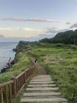 Standing at the foot of Songaksan Mountain, I felt time slow down. The salty ocean breeze brushed against my face, and the rhythmic whispers of the waves below blended with the rustle of the tall grass. It was one of those rare places where the earth feels alive — where sea, sky, and mountain meet in perfect harmony.