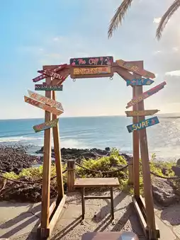 Visiting The Cliff (더클리프) is an elevated experience, both literally and stylistically. Perched high above the ocean, the unobstructed horizon line of the deep blue water is the star of the view. The establishment's tropical tiki-bar ambiance and vibrant, colorful decor create a lively contrast to the somber tones of the surrounding Jeju basalt rock.