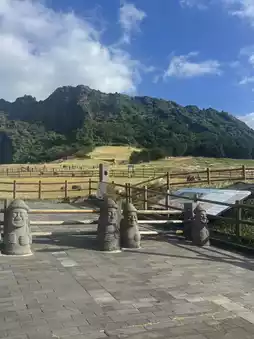 1. Seongsan Sunrise Peak Observatory (78 Seongsan-ri, Seongsan-eup, Seogwipo-si, Jeju-do): Hike up early for a breathtaking sunrise—don’t forget it gets seriously windy up top! There’s a visitor center at the foot of the mountain, marked by four statues, perfect for snapping pics against a backdrop of mountains, blue sky, and fluffy clouds.