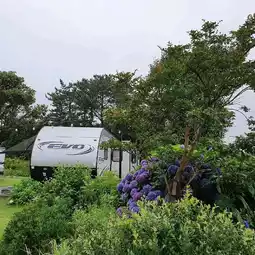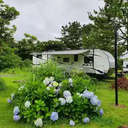 The hydrangeas are in full bloom at Okra Resort in Pyoseon, and the #Hydrangea Festival is just around the corner, so I love it. There are sky blue, purple, resorts, and caravans, so you can even camp.