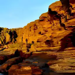 Yongmeori Coast is located at the foot of Mt. Sanbangsan and extends to the coast. It is called Yongmeori Coast because it resembles a dragon's head entering the sea. Sandstone rock walls that have been layered over tens of millions of years have been eroded by waves to form strange cliffs. The caves and traces of waves that have been carved like secret rooms by the waves make you feel the grandeur of encountering a long history. The spectacular view of the 30-50m long cliffs that continue like a curve has also been filmed as a background for commercials and movies.