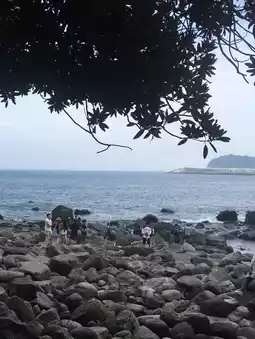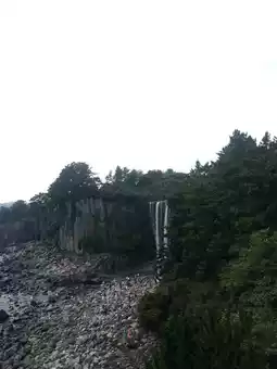 The "Jeongbang Waterfall" is also known as the "Jeongbang Summer Waterfall" and is listed as one of the ten scenic spots in Yeongju. Water up to 8 meters wide rolled down from a height of 23 meters and directly crashed into the sea. In the distance, a lot of water splashed by the waterfall was floating over. Whether you look at it from far or near, you can feel the magnificence of its power. I heard that if the sun shines on the waterfall, a beautiful rainbow will often form, but that depends on whether you are lucky.