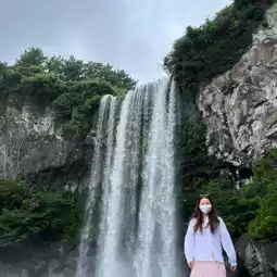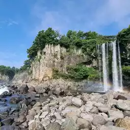 There are three waterfalls in Jeju City, and the Jeongbang Waterfall is the highest among them. It is also the only waterfall in Asia that flows directly into the sea. Therefore, while enjoying the waterfall, you can directly see the beautiful scenery of the sea, which is truly breathtaking.
