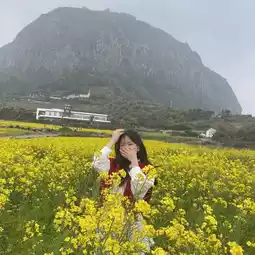 If you come to Jeju in early spring, you must take a certification shot of the rapeseed flower field😆