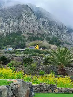 We went to Sanbangsan, which is said to have the prettiest rapeseed flower field photos.
