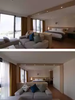 As soon as you enter the room, the ocean view unfolds, and as expected from a suite, the bedroom and living room are separated, so you can use the room spaciously without any inconvenience.