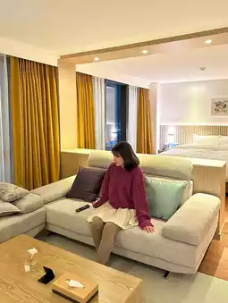 I was able to rest comfortably because the room was quite large-! It felt like the front space was divided into a living room and the back space was used as a bedroom. It is definitely structured to be comfortable.