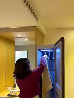 I liked the fact that I could manage the clothes I wore during the day thanks to the styler provided at the entrance of the hotel room. There was even a separate wine refrigerator, so it was convenient to store them.