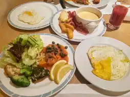 The room type was a standard double, and it didn't feel cramped, so it was fine, but the wind blew really hard all night, and I stayed up all night because of the rattling sound of the windows, but everything else was good😂 The breakfast buffet was also famous, so I had high expectations, but there were a lot of options, but the taste was just
