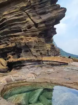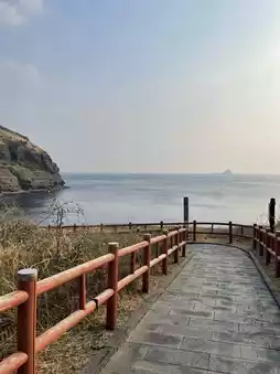 Yongmeori Coast near Seogwipo Sanbangsan! They say you can see a beautiful rock wall that was formed 1.8 million years ago. It would be nice to go down to the coast and see the rock wall, but when I went, the weather wasn't so good so I couldn't go to the coast, which was a shame.