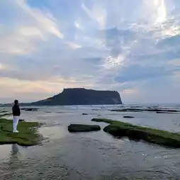 This is Gwangchigi Beach located near Seongsan Ilchulbong Peak in Seongsan-eup, Jeju. I visited right after sunrise, and fortunately, the tide was right, so I was able to capture the unique scenery of Gwangchigi Beach. The scenery on a clear day without clouds is beautiful, but the moderately cloudy clouds and the red glow right after sunrise made it feel like I was on another planet, making me feel mysterious.