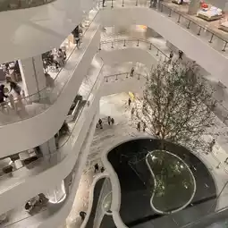 When you go down the escalator, you'll see a huge indoor waterfall. It's very large and gives a grand feeling!