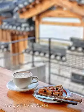 My favorite view of Samcheongdong can be seen through the large windows, along with delicious cafe latte and apple pie.